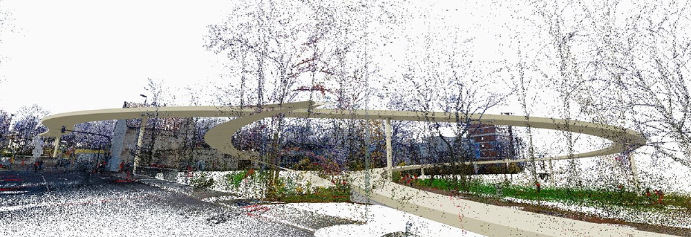 Demnach soll die Brücke als Stahlkonstruktion gebaut werden, „die wie ein schwebendes Band wirkt und auf neun filigranen Stützen ruht“. Für Fußgänger ist ein zwei Meter breiter Weg vorgesehen, Radfahrer sollen eine drei Meter breite Spur nutzen.
