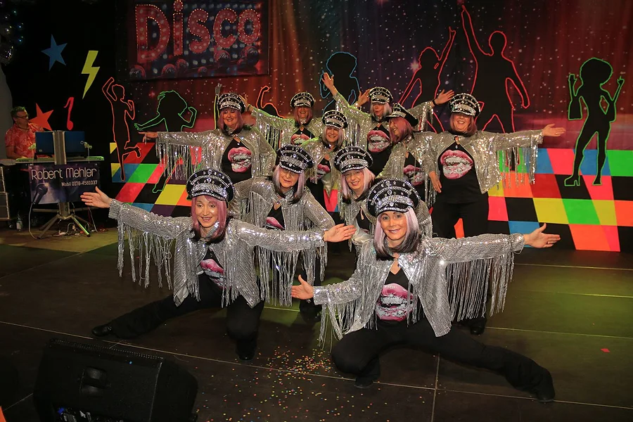 Nach einer kurzen Pause eroberten die „Crazy Chicken“ Saal und Bühne. In ihren silbern schillernden Paillettenjacken zeigten sie eine mitreißende Choreografie zu topaktuellen Hits und heizten damit die Stimmung im Saal so richtig an. Der Auftritt der vereinseigenen Showtanzgruppe ist immer ein besonderes Highlight der Wallauer Fremdensitzung.