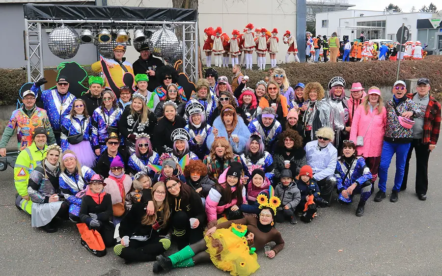 Mit großer Fußgruppe und aufwendig geschmücktem Wagen nahmen die aktiven Wespen am Faschingsumzug in Hofheim teil. Unter dem Motto „Disco! Laut – bunt – schrill“ präsentierte sich die Narrenzunft am vergangenen Sonntag farbenfroh, schillernd und in bester Fastnachtsstimmung. Sogar der Wettergott hatte es mit den Karnevalisten gut gemeint. Der Umzug bildete den krönenden Abschluss einer rundum gelungenen Kampagne und setzte zugleich einen eindrucksvollen Schlusspunkt unter eine närrische Saison voller unvergesslicher Momente.