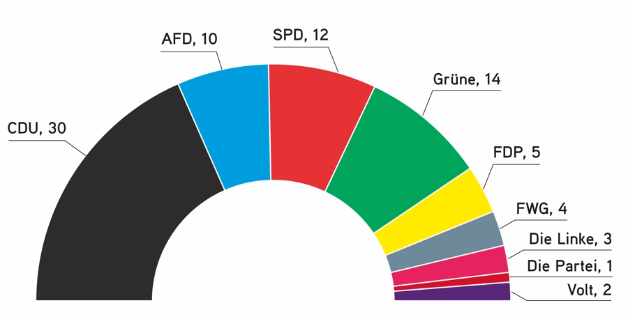 - CDU: wie bisher 30 Sitze (37,20 %)