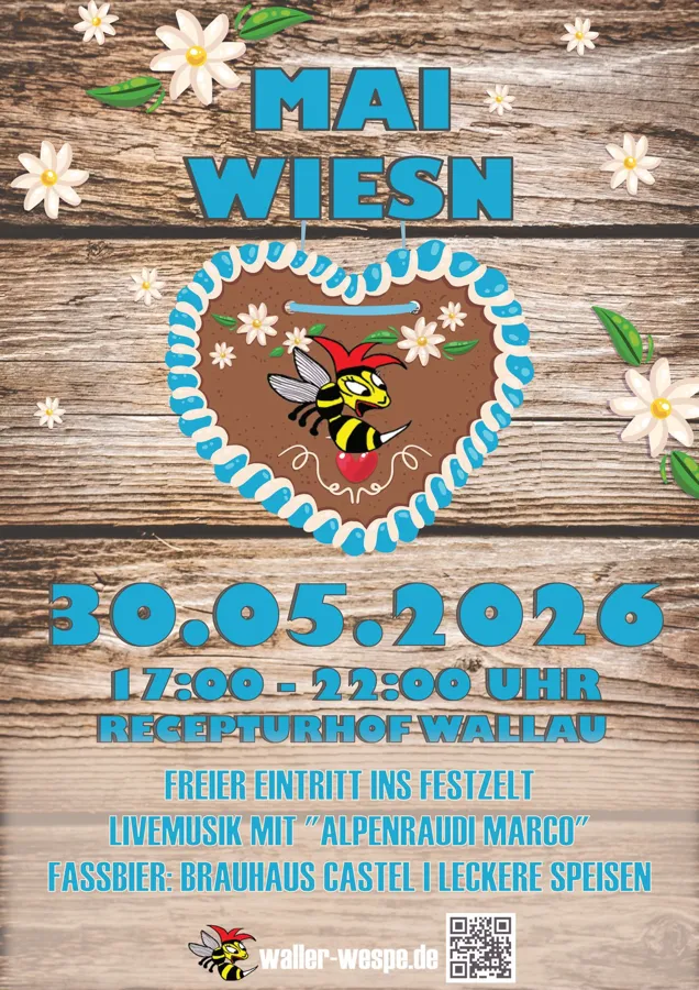Los geht’s am 30. Mai – und dann auch gleich mit einem echten Highlight: Erstmals lädt der Karnevalsverein zur Maiwiesn im Herzen Wallaus ein. Um 17 Uhr öffnet das Festzelt auf dem Recepturhof seine Pforten für die Bewohner des Ländchens. Höchste Zeit also, Dirndl und Lederhosn aus dem Schrank zu holen. „Alpenraudi Marco“ sorgt mit Tanz- und Partyhits für beste Bierzeltstimmung – ganz so, wie es sich für ein zünftiges Wiesnfest gehört. Dazu gibt’s frisch gezapftes Bier aus dem Brauhaus Castel und herzhafte Schmankerln. Der Eintritt ist frei. Wer den Verein unterstützen möchte, kann dies gerne mit einer kleinen Spende tun.