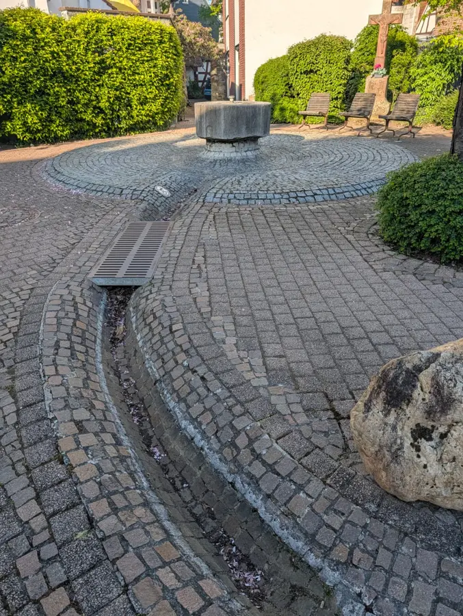 Am Alten Bach: Der Name ist geblieben, das Wasser nicht. Brunnen und Rinne sind trocken.